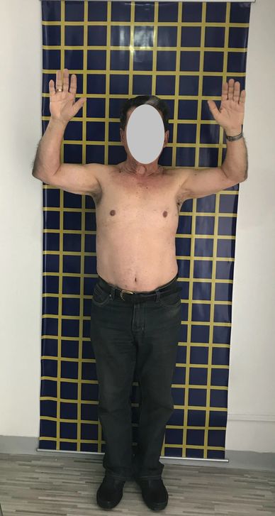 Se realiza una valoración de control el 23 de noviembre de 2017 con el fin de establecer después de 3 años la respuesta de los tejidos, a esta fecha el paciente tiene 79 años, refiere ausencia de dolor en todas las actividades, a la valoración postural no presenta cambios relevantes, en la movilidad de hombro derecho presenta flexión activa de 170 grados en ausencia de dolor, pasivo completa rango de movimiento en ausencia de dolor, ABD activo de 180 grados, rotaciones de 90 grados, extensión completa, durante la movilidad no presenta crepitación ni dolor, leve retracción de cápsula posterior, el paciente manifiesta que ya no realiza los ejercicios porque no presenta dolor y sigue jugando tejo.
